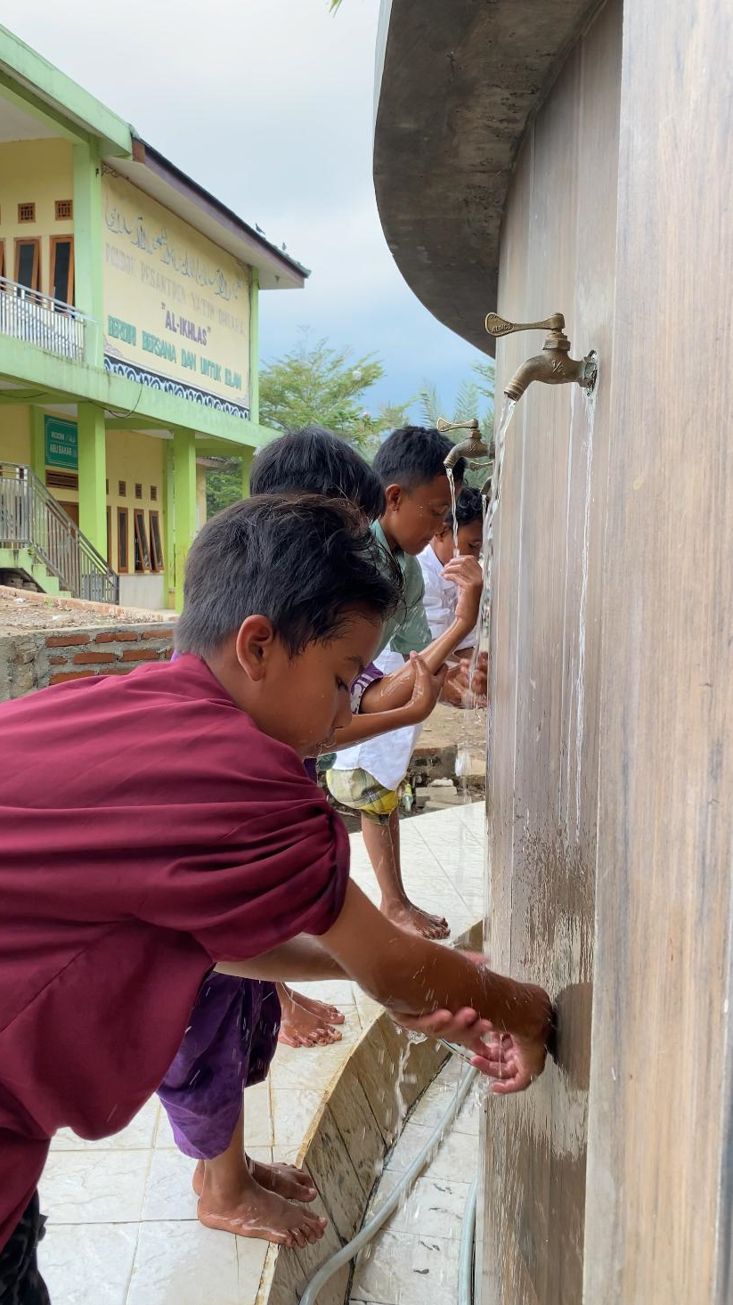 Mereka adalah anak-anak yatim dhuafa yang tetap semangat belajar dan mengaji meski harus bergantian menggunakan air setiap harinya. Semoga pengeboran sumur ini menjadi jalan kebaikan bagi para santri dan kita semua.